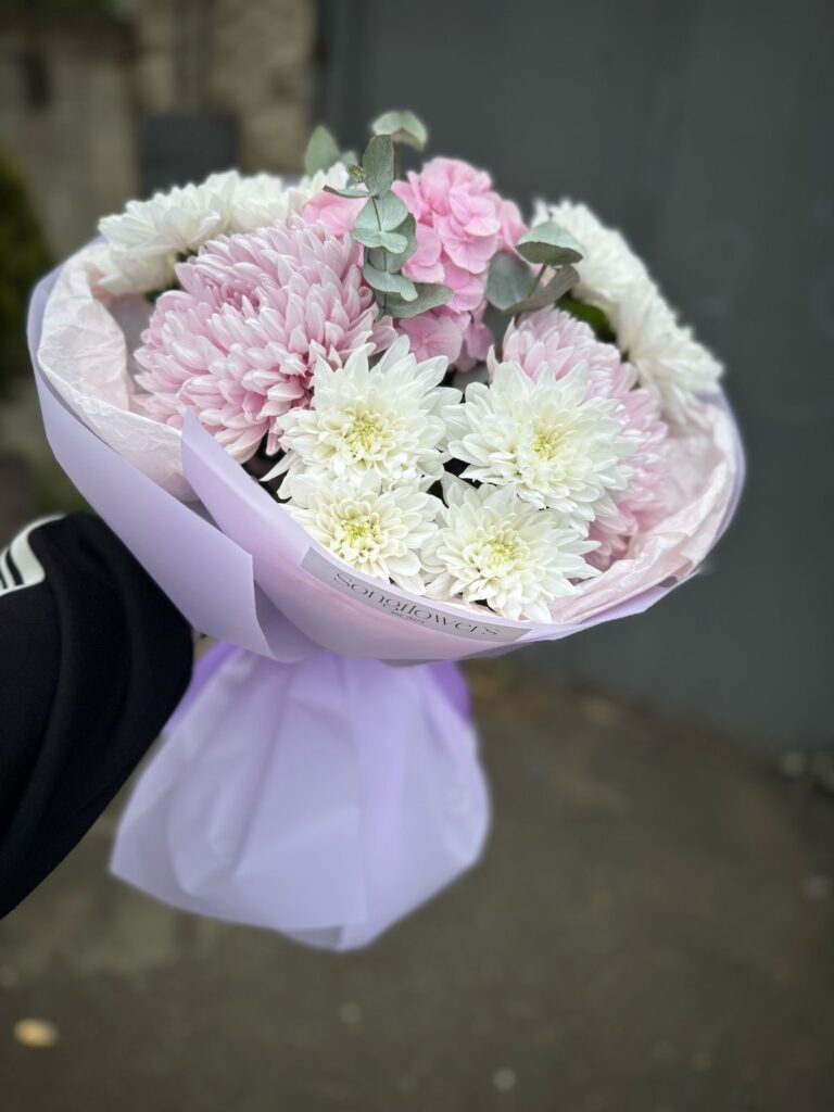 თაიგული ქრიზანტემებით და ჰორტენზიით